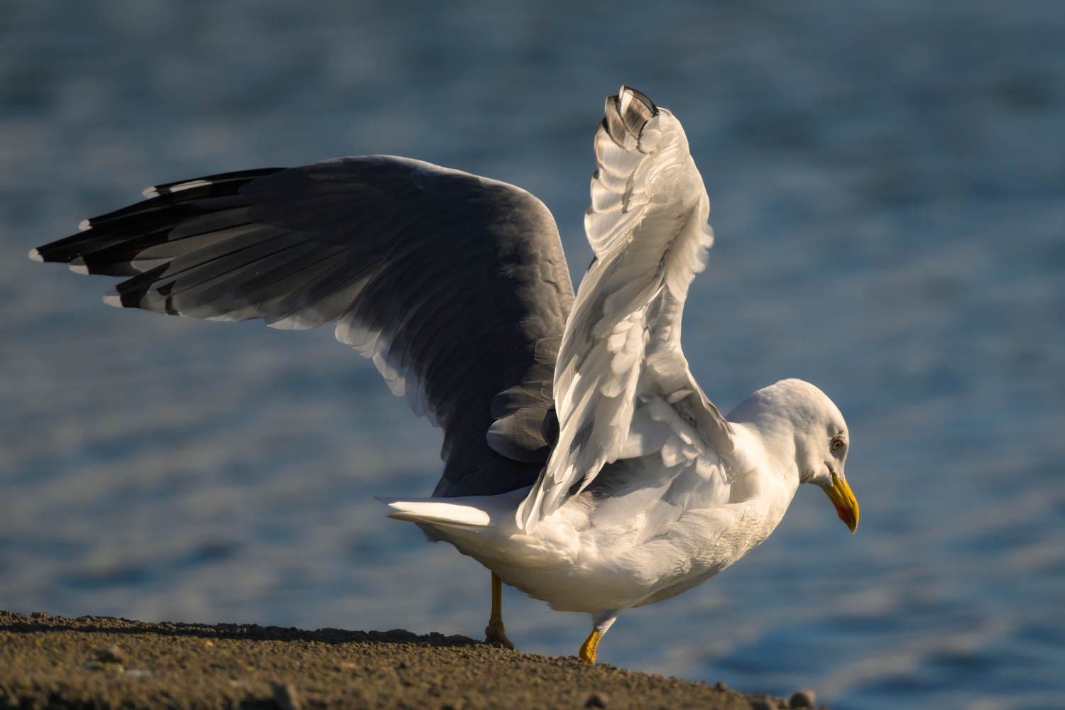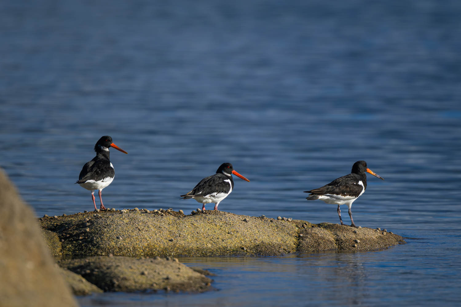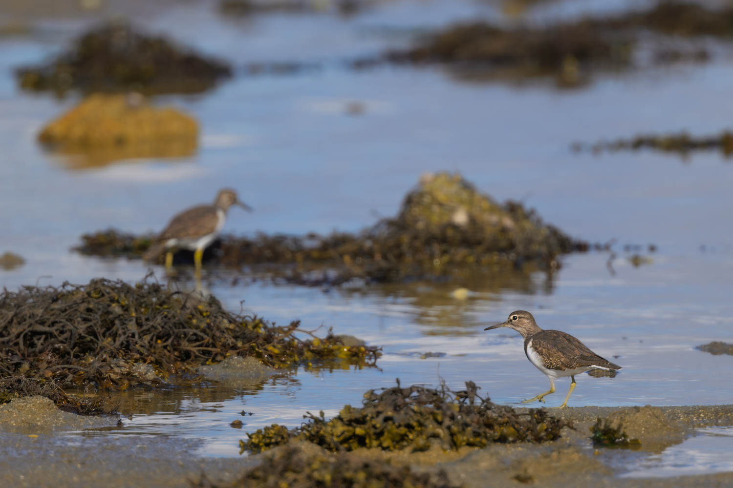 Wir fanden schnell ein Plätzchen am Strand und wurden überrascht: Bei strahlendem Sonnenschein tummelten sich viele Vögel auf den bei Ebbe aus dem Wasser ragenden Felsen.