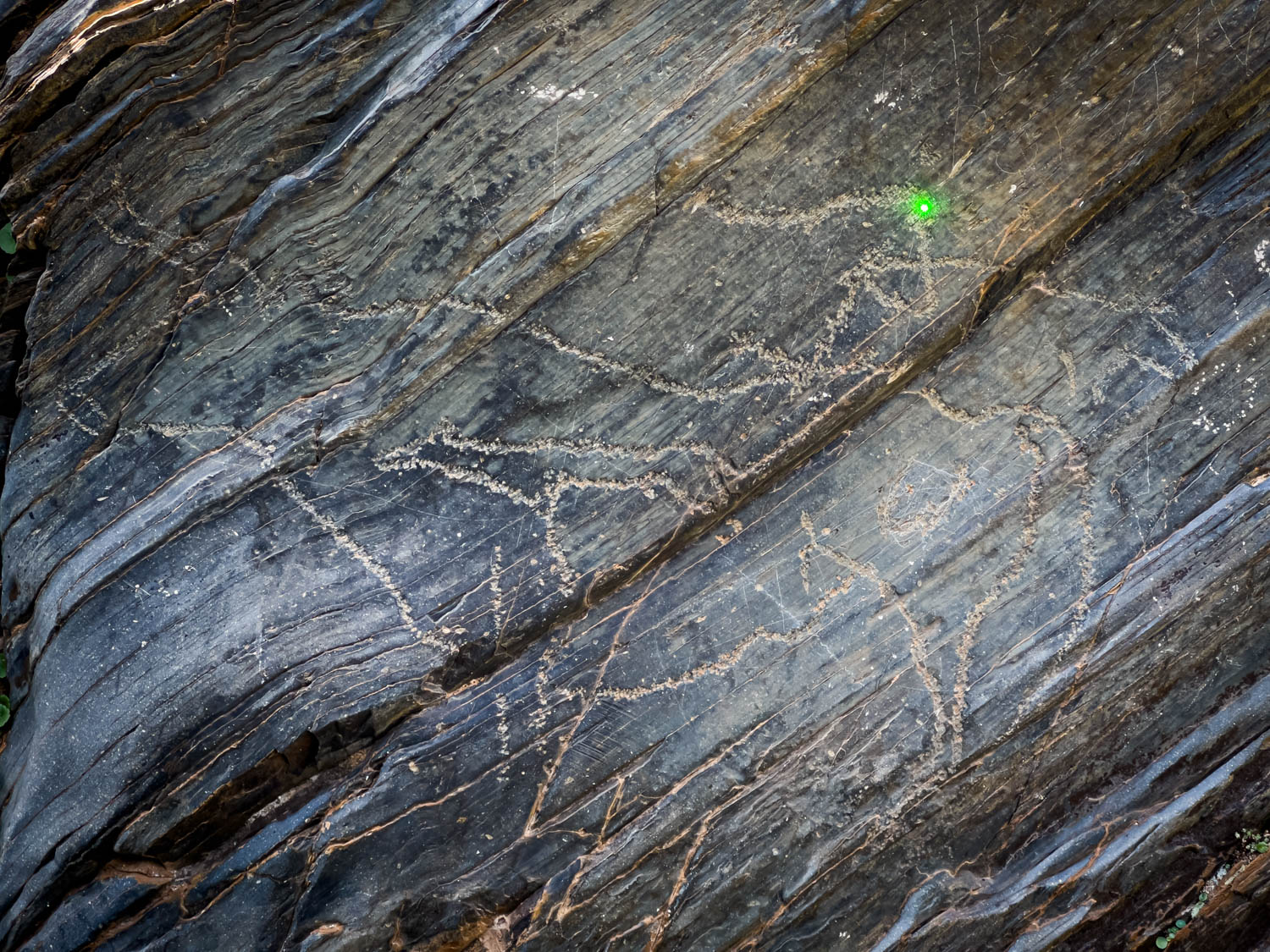 Typisch für das Côa-Tal ist, dass die eingeritzten Tierdarstellungen im Laufe der Jahrtausende überlagernd angefertigt wurden, so dass es gar nicht so leicht ist, alle Tiere in dem Durcheinander auch zu erkennen.
