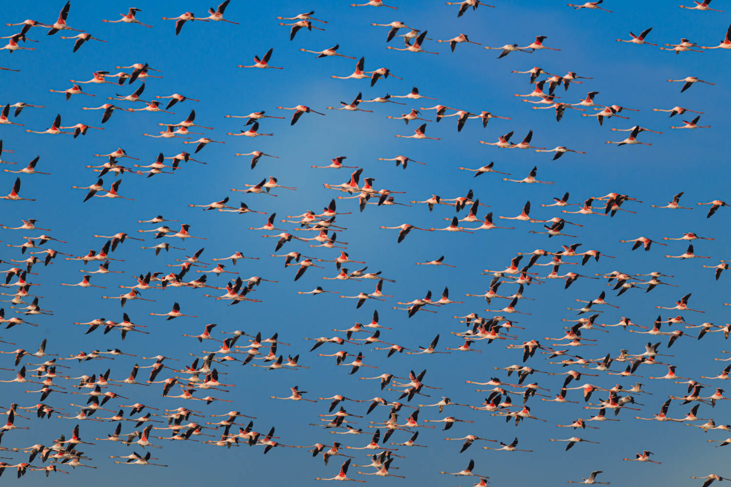 Die abgeernteten Felder wurden geflutet. Dies lockte eine große rosa Wolke an: Rosaflamingos (Phoenicopterus roseus).