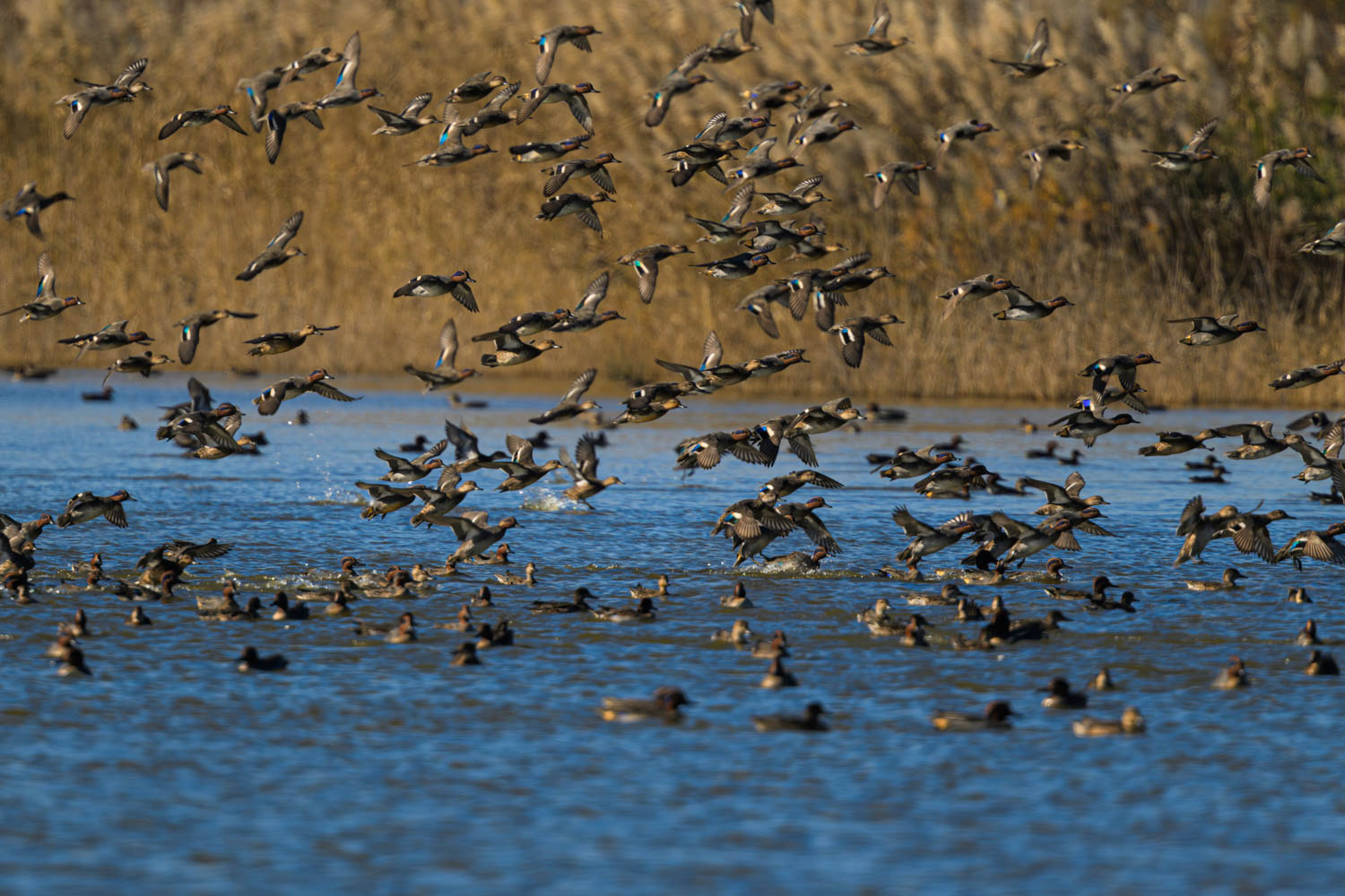 In einer der Lagunen tummelten sich viele Krickenten (Anas crecca).