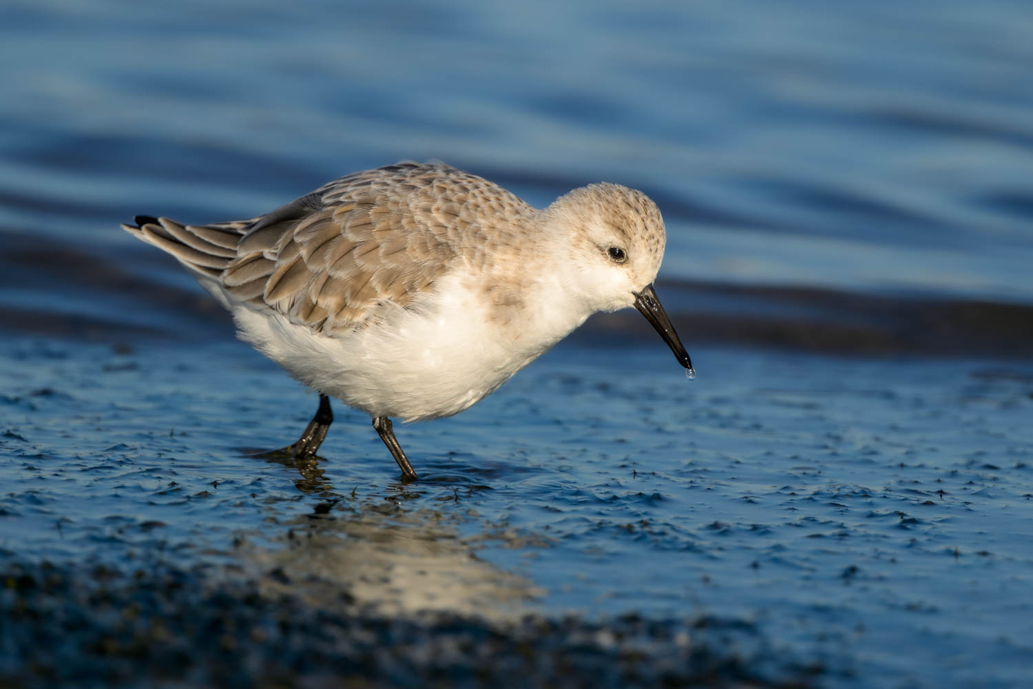 Am Ufer des Tejo suchten Sanderlinge (Caldris alba) emsig ihre Nahrung.