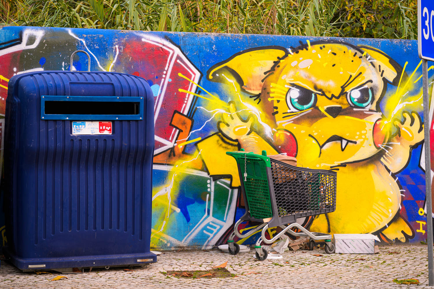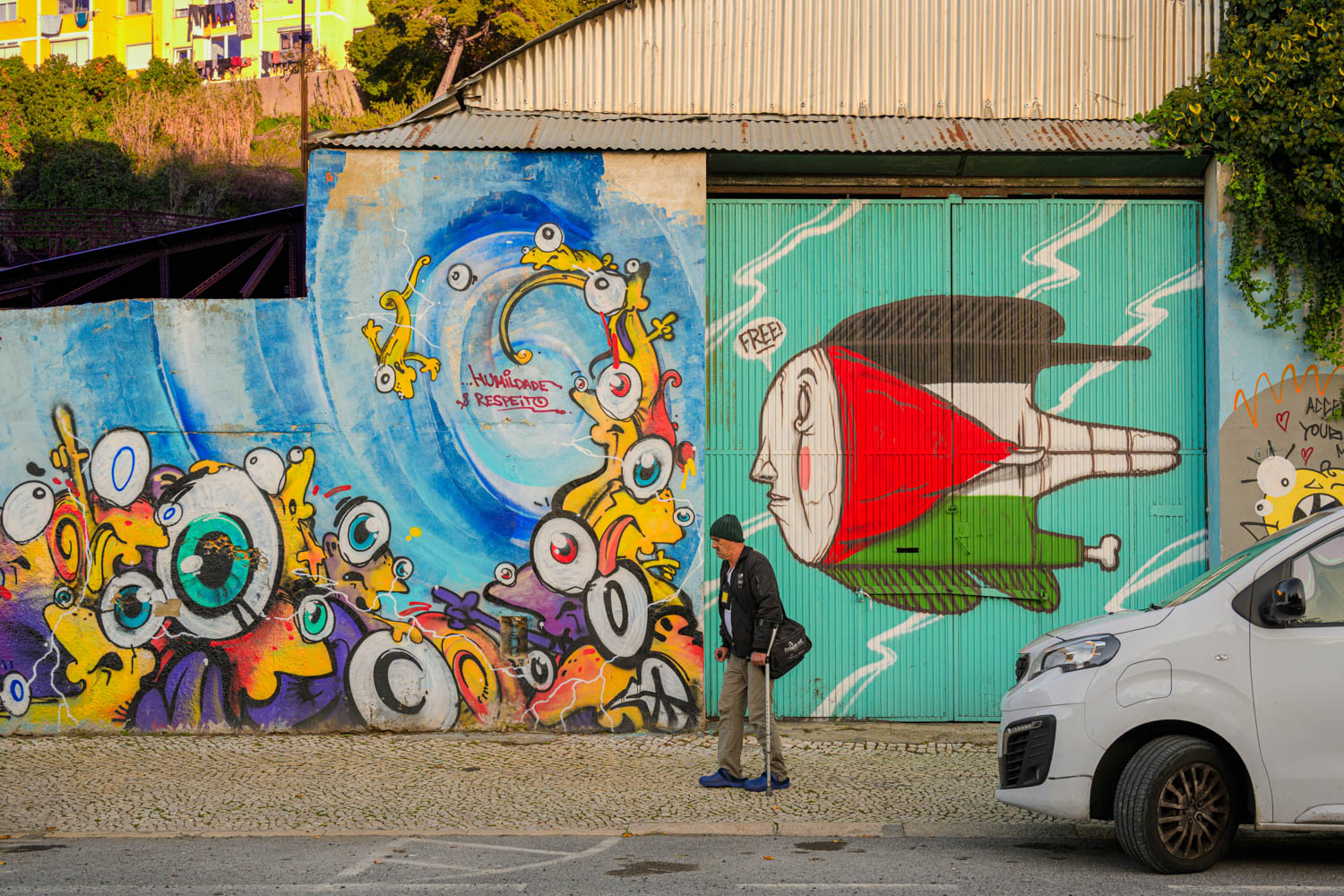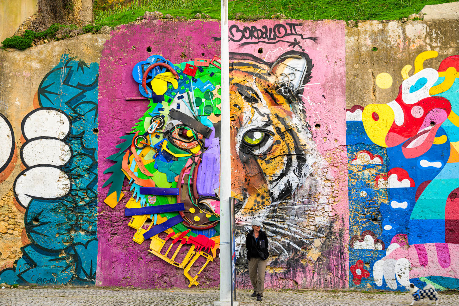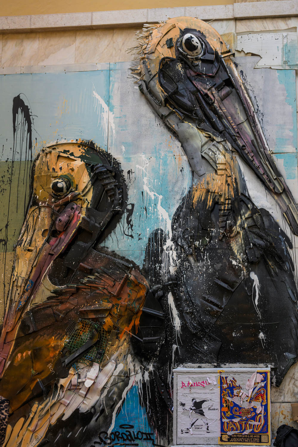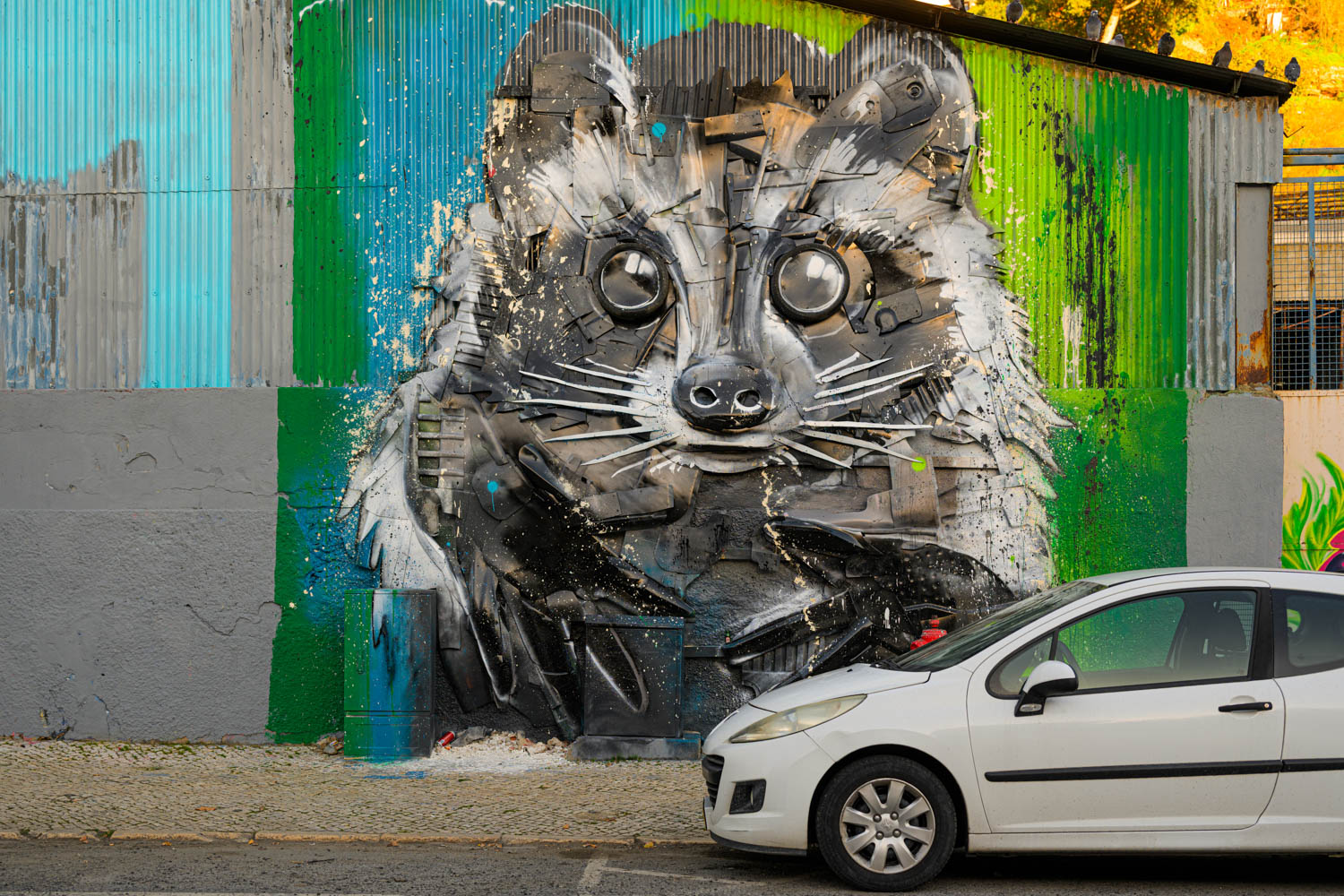 Gleich nebenan ein Werk des Künstlers Bordalo II. Er ist bekannt für seine dreidimensionalen Figuren aus Abfall.