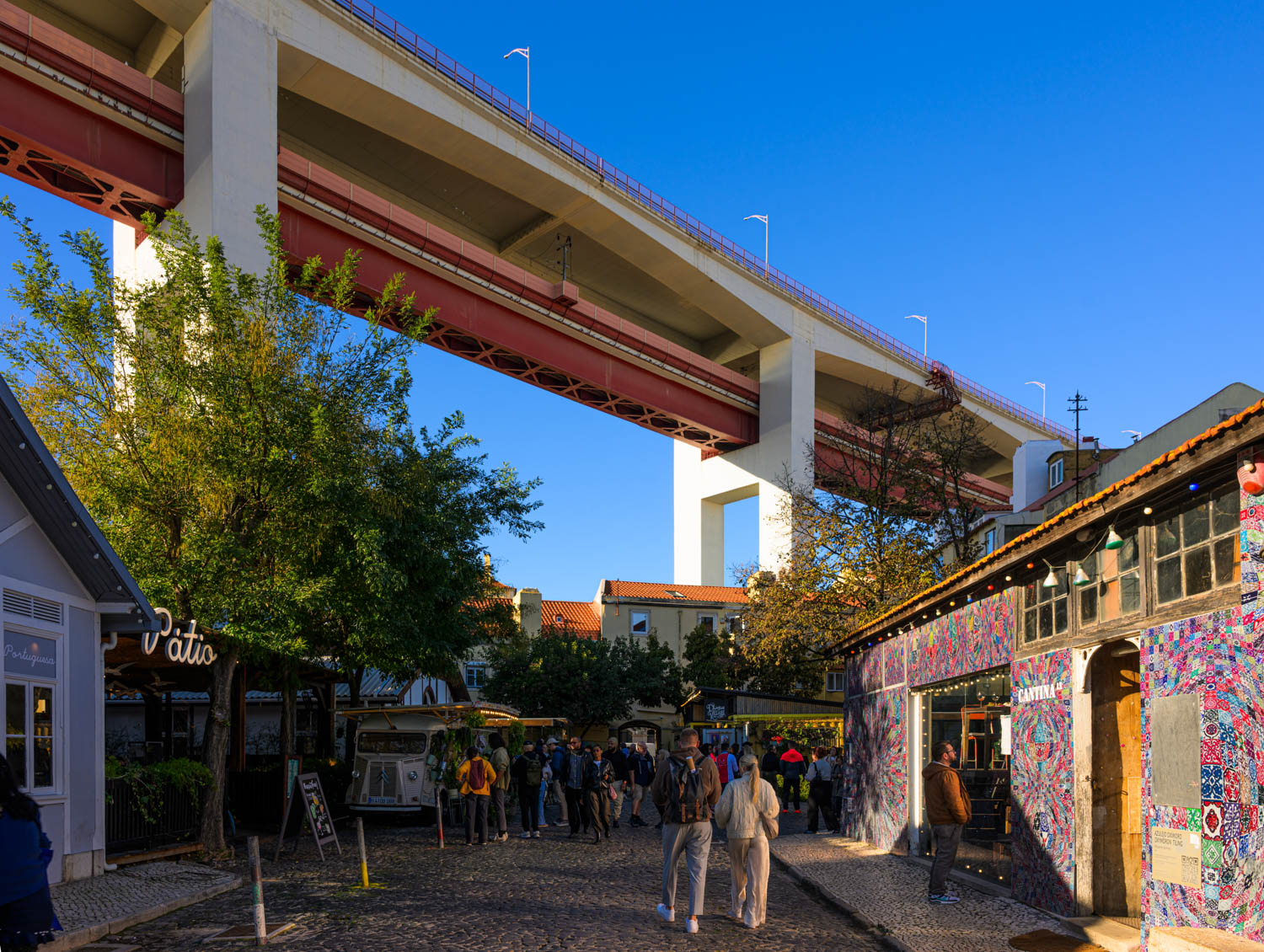 Fast unter der bekannten roten Brücke liegt die LX-Factory, eine ehemalige Fabrik, die vor einigen Jahren eine alternative Kunstszene für sich entdeckte.