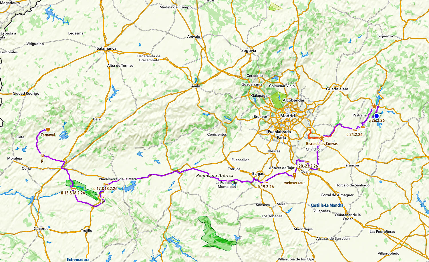 Die vielen Kalorien mussten wir wieder loswerden. Da bot sich die Via Verde del Tajuña an, eine ehemalige Bahnlinie und heute ein Fahrrad- und Wanderweg. Sie ist 50 km lang, wir parkten in der Mitte und fuhren einmal die östliche und einmal die westliche Hälfte hin und her. Bisher war das die schönste Via Verde.