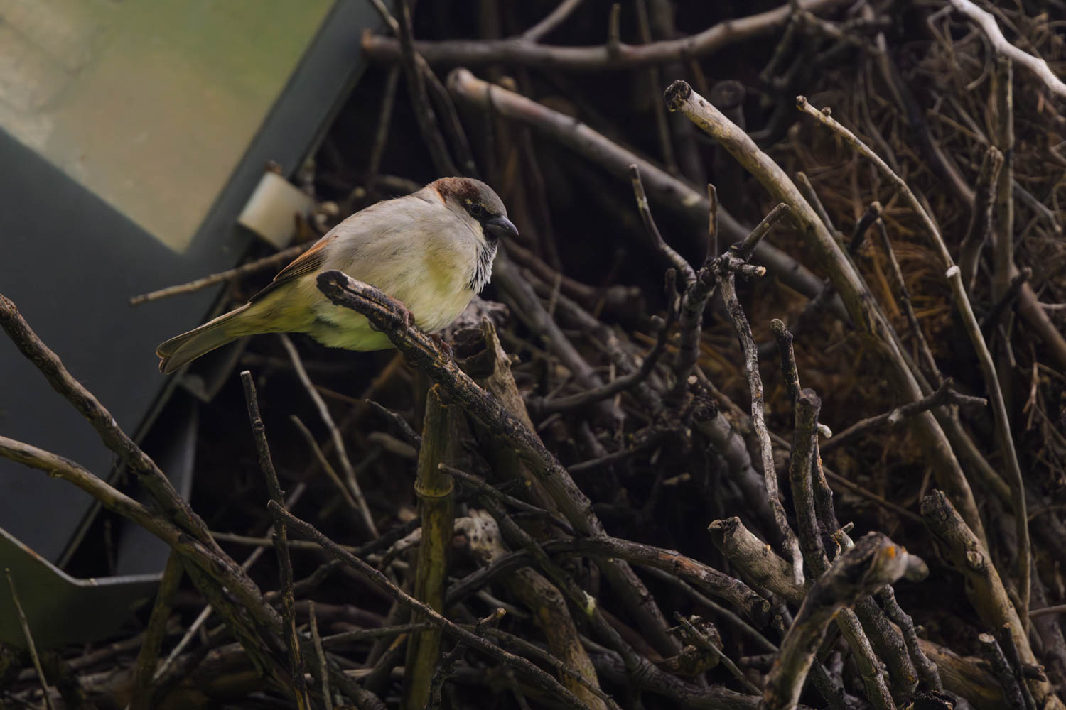 Am Storchennest wohnten Untermieter: Haussperling (Passer domesticus).
