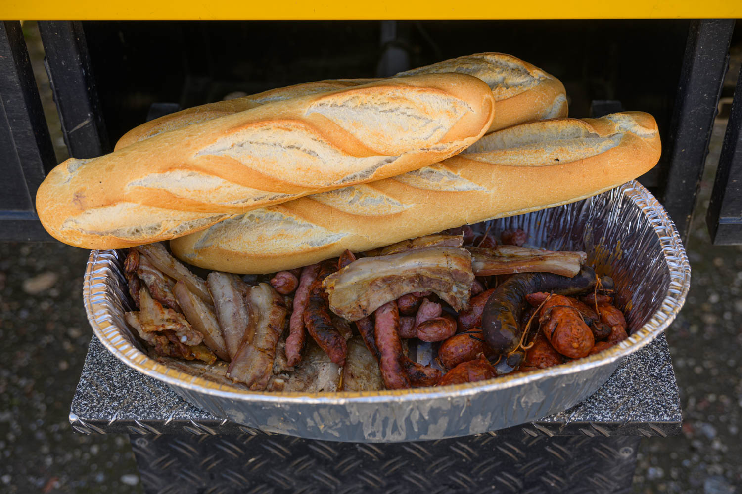 Bevor alle wieder abfuhren, um in ihrem Dorf weiter zu feiern, hinterließen sie uns die Reste vom Grill. Wie man sieht, ist Spanien nicht gerade ein Land voller Vegetarier.
