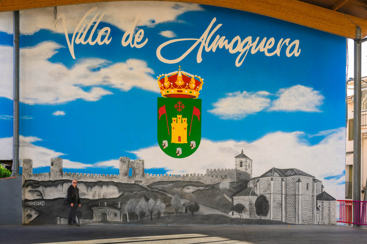 Almoguera ist ein kleiner Ort mit einer Burg und einem großen Mural an der überdachten Plaza.