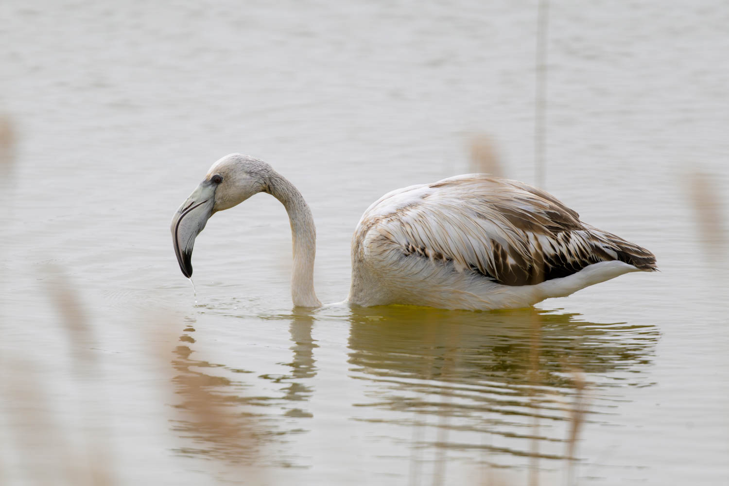 Ein paar Rosaflamingos (Phoenicopterus roseus) stolzierten in der Lagune.