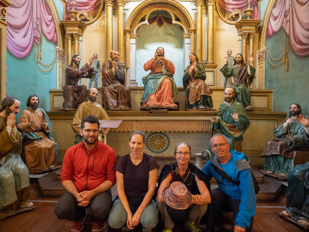 Unten, im Kirchenschiff wird man fast erschlagen: Wände, Decken, Altäre, Säulen, alles ist reich verziert, kaum ein Quadratzentimeter blieb ungenutzt und fast alles ist vergoldet. So eine Kirche hatten wir bisher noch nicht gesehen.