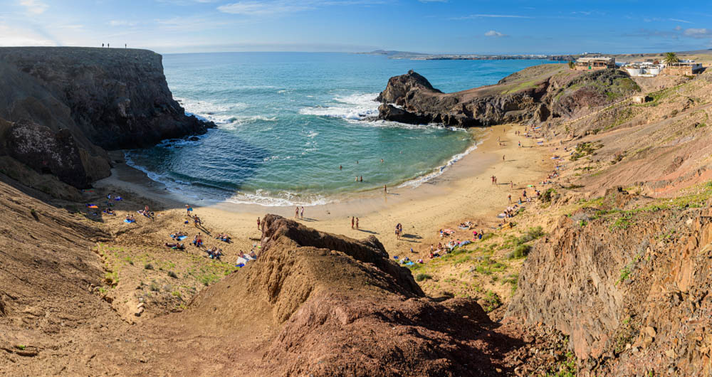 Östlich von Playa Blanca, an der Südspitze der Insel befinden sich die Papagayo-Strände. Der größte ist die Playa Mujeres, an der man auch schön mit dem Camper stehen kann. Wer entdeckt Sol?