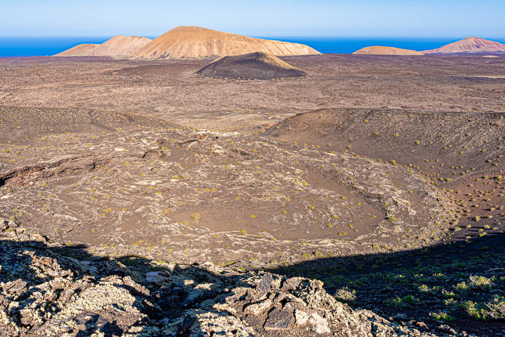 Uns faszinieren jedoch die Vulkane mehr als die Stadt und so fuhren wir wieder in die Lava. Hier ist Ulrike auf der Montaña Tingafa. Im Hintergrund sieht man die große Caldera blanca, unser nächstes Wanderziel.
