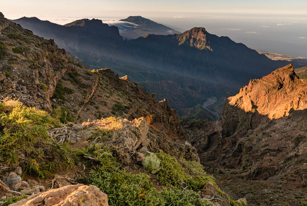 Die Mitte der Insel wird von einem riesigen Vulkankrater dominiert, der Caldera de Taburiente. Ihre Ausmaße sind so gewaltig (8-9km Durchmesser), dass man sie kaum als Caldera erkennen kann, wenn man an ihrem Rand steht.