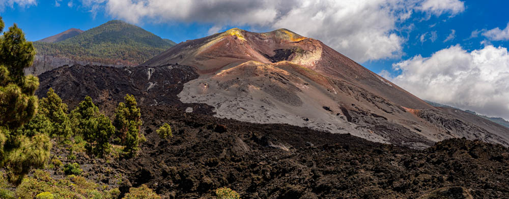 Vom Mirador del Time aus hatten wir einen ersten Blick auf den neuen Vulkan, der im September 2021 ausgebrochen war.