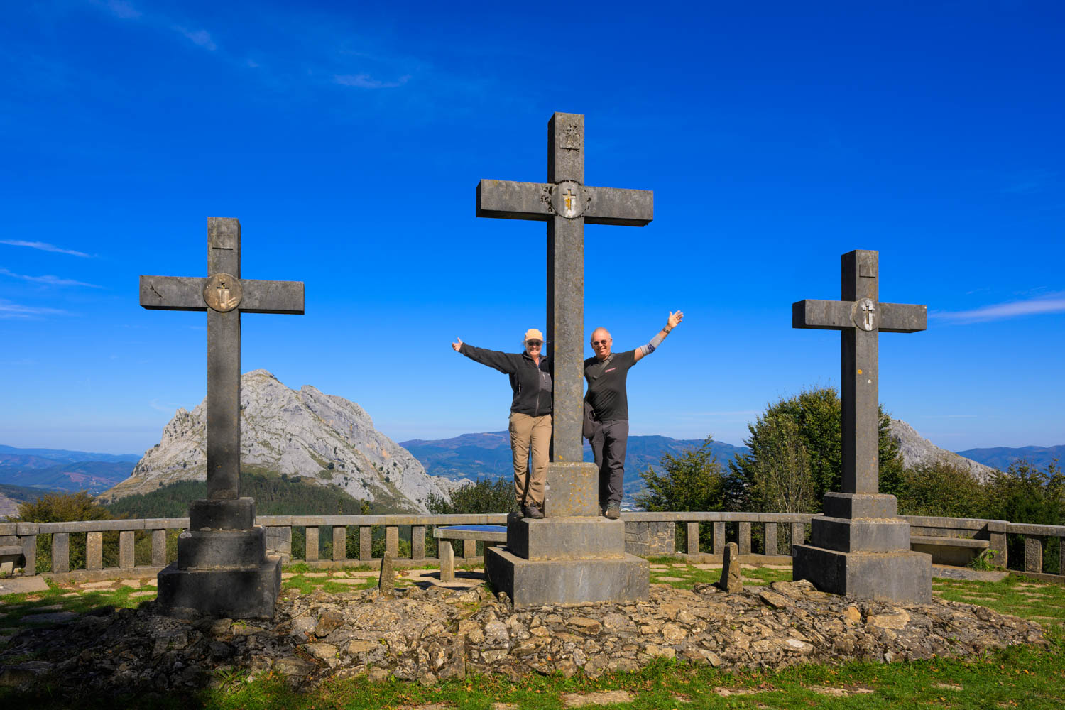 In den baskischen Bergen legten wir einen Stopp beim Heiligtum von Urkiola ein. Allerdings war gerade Wochenende und allerschönstes Wetter. Wir waren also nicht alleine und erst einmal mit einem überfüllten Parkplatz konfrontiert. Nach etwas Suchen fanden wir dann doch noch ein recht schiefes Plätzchen für unseren Sol.