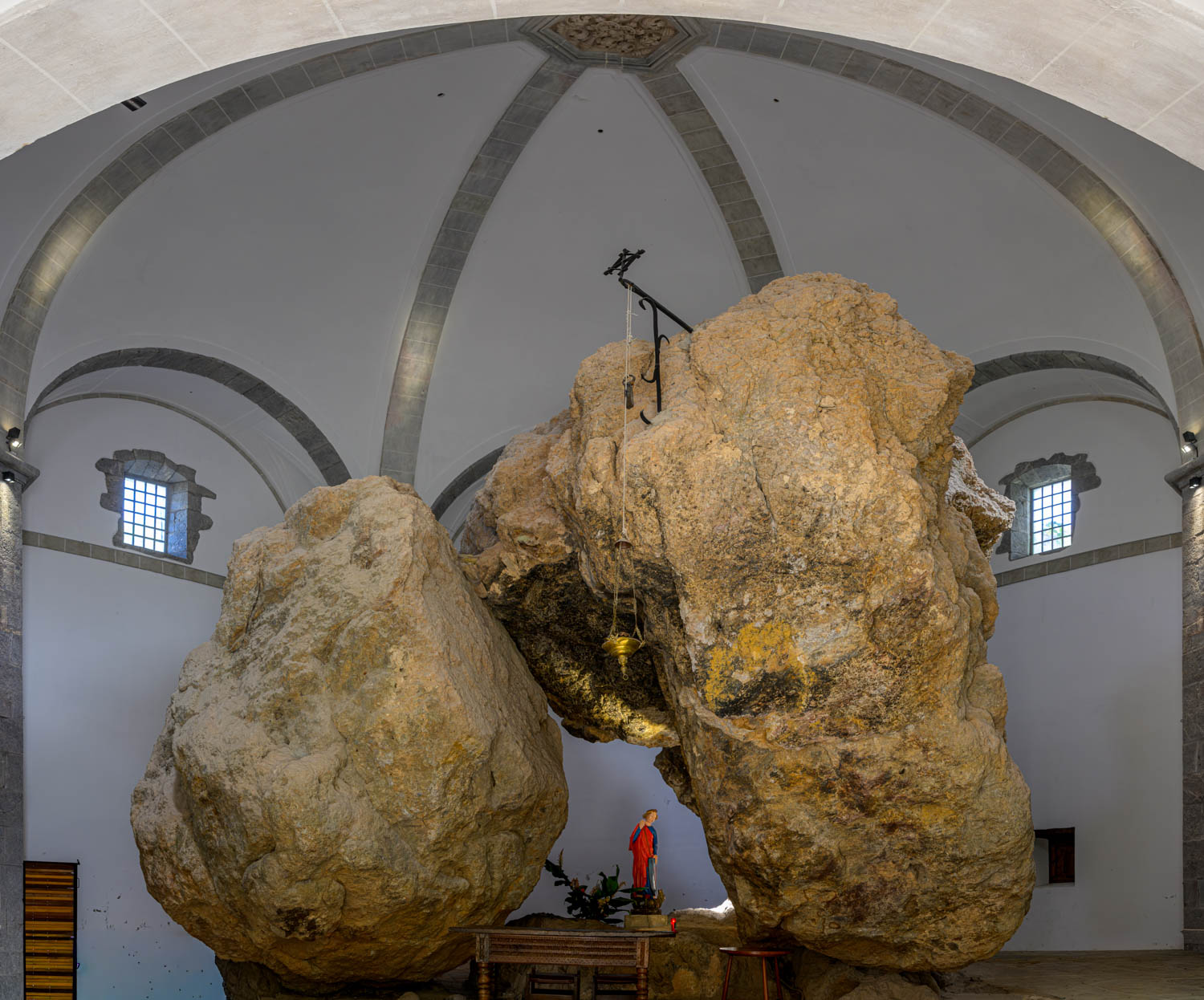 Ausflügler aus der Landeshauptstadt Vitoria gaben uns den Tipp, doch die Ermita de San Miguel in Arretxinaga zu besuchen - ohne uns zu verraten, was deren Besonderheit ist. So stellten wir dort staunend fest, dass die Kapelle um zwei große Felsen herum gebaut wurde, unter denen der Erzengel den Drachen absticht.