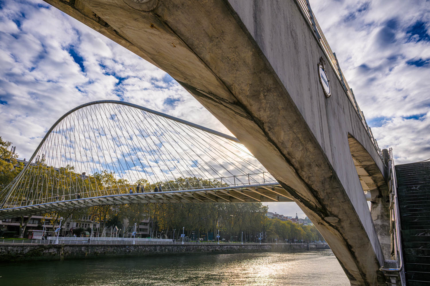 Über den Nervión, der durch die Stadt fließt, gibt es schwungvolle Fußgängerbrücken.