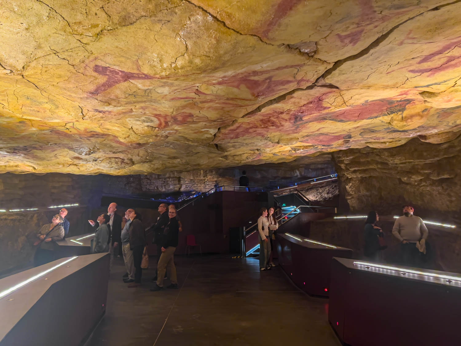 In die berühmte Höhle von Altamira dürfen nur sehr wenige Besucher. Damit alle in den Genuss der alten Felsmalereien kommen, ist im Museum eine 1:1 Nachbildung der Höhlendecke zu bewundern.
