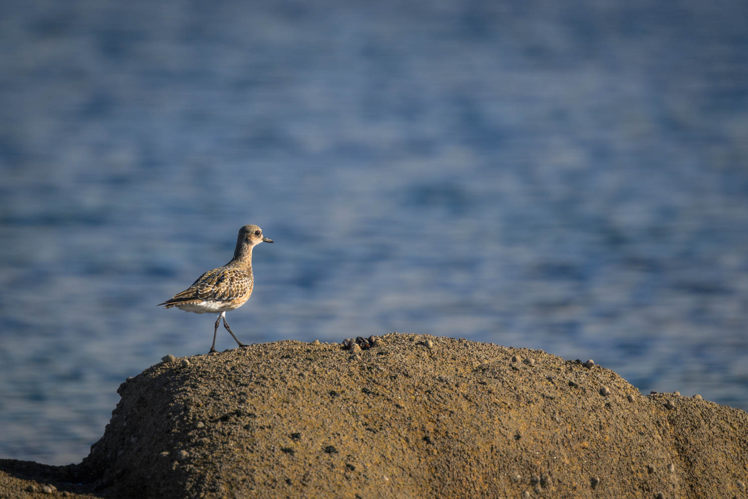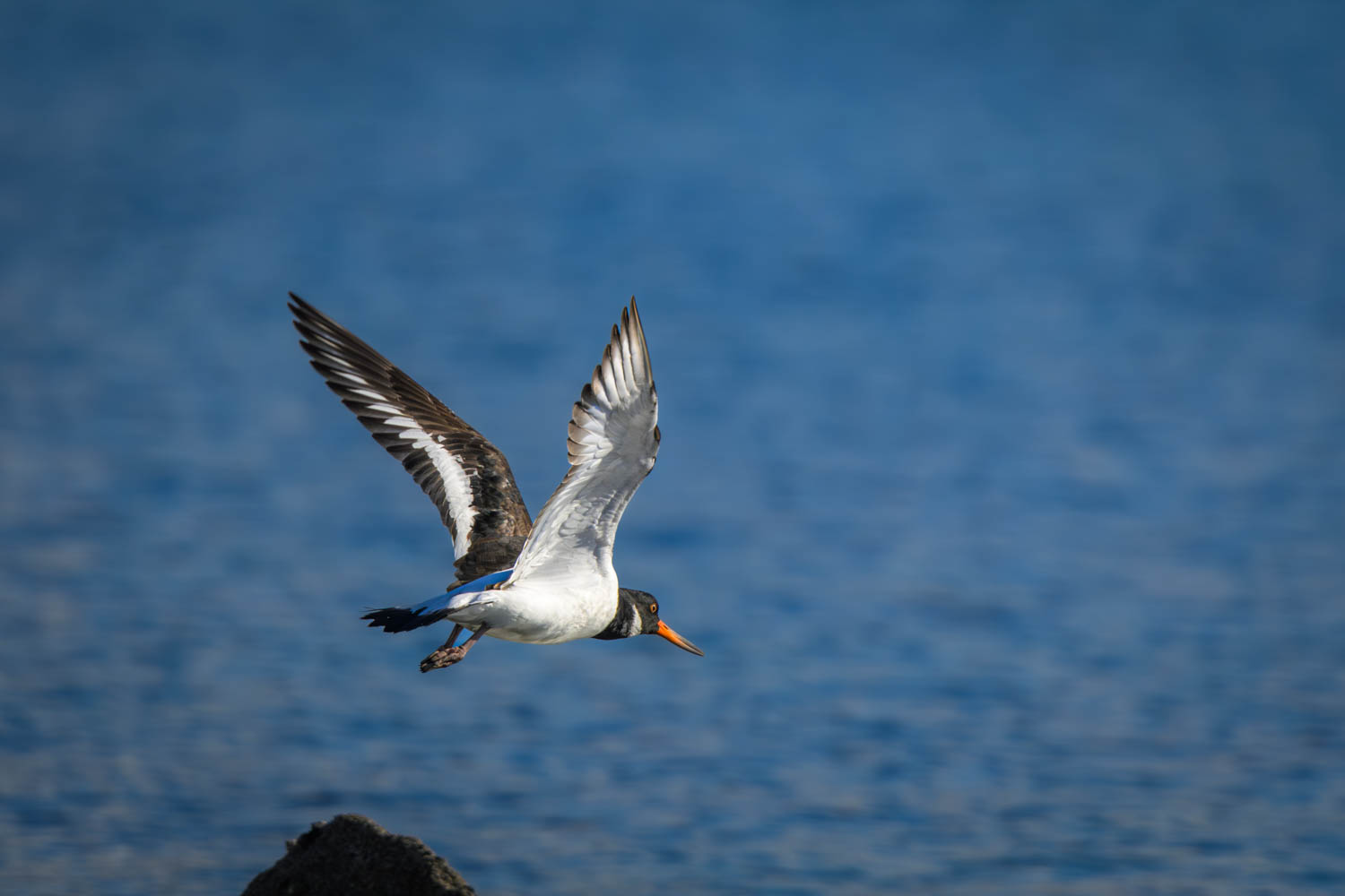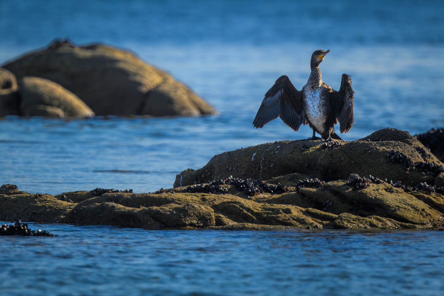 Wir fanden schnell ein Plätzchen am Strand und wurden überrascht: Bei strahlendem Sonnenschein tummelten sich viele Vögel auf den bei Ebbe aus dem Wasser ragenden Felsen.