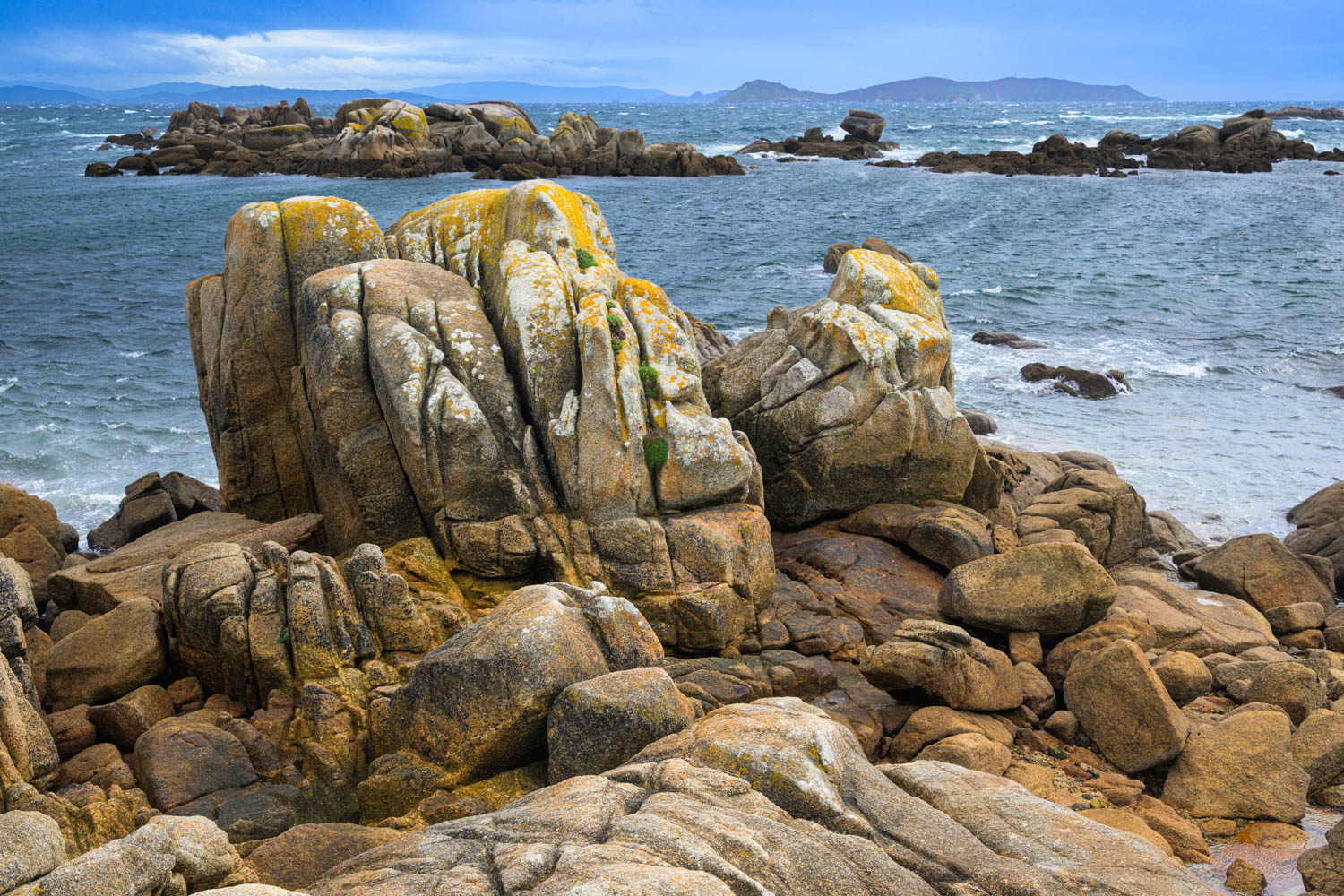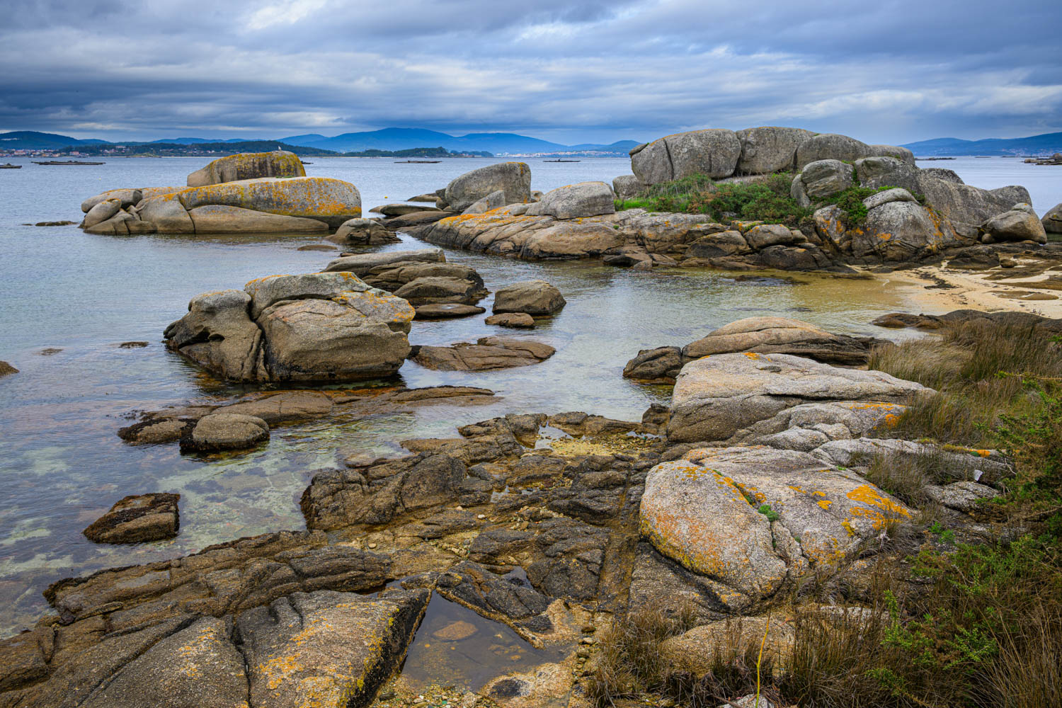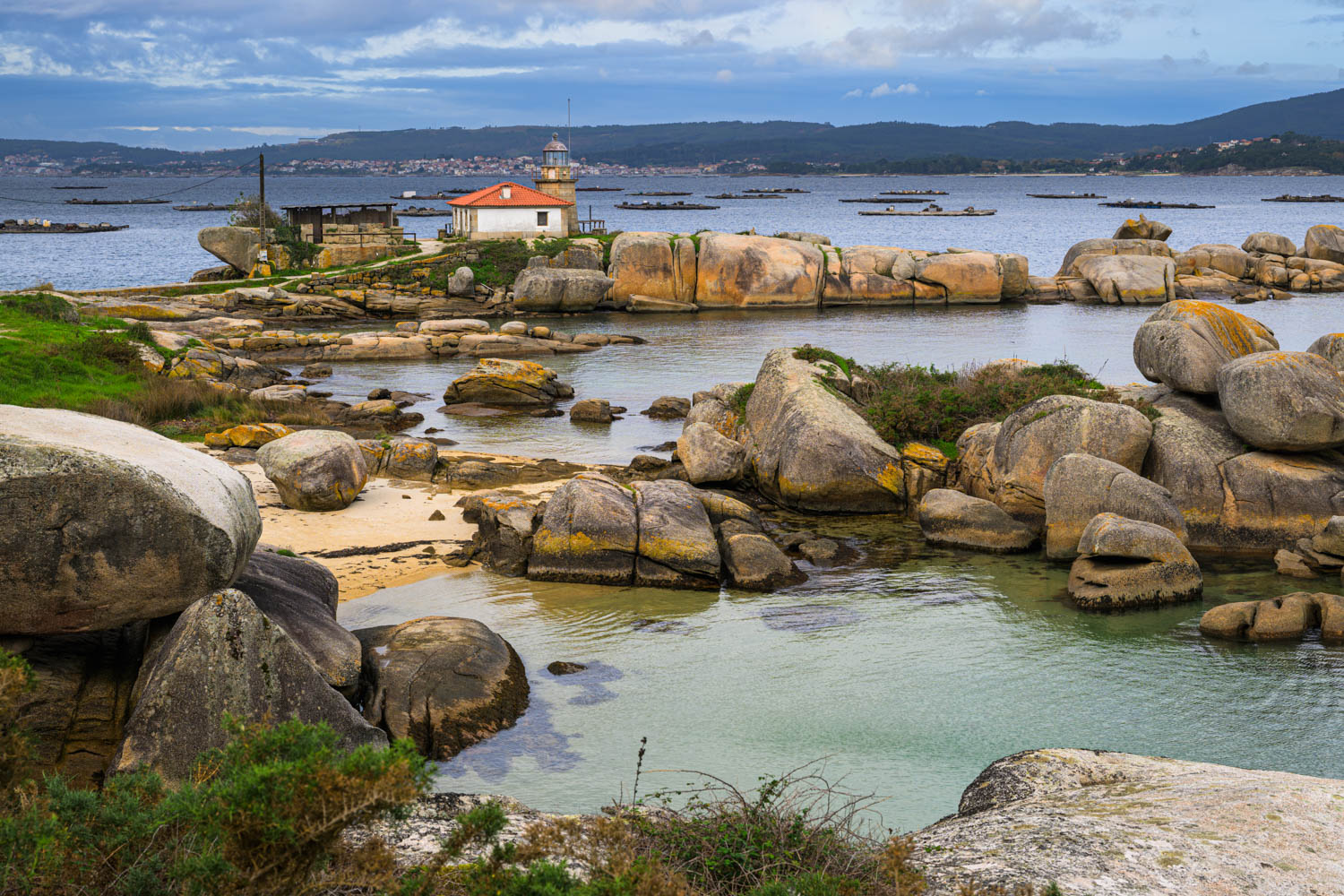 Im Norden von Arousa steht ein kleiner Leuchtturm in einem Labyrinth aus großen Felsen.