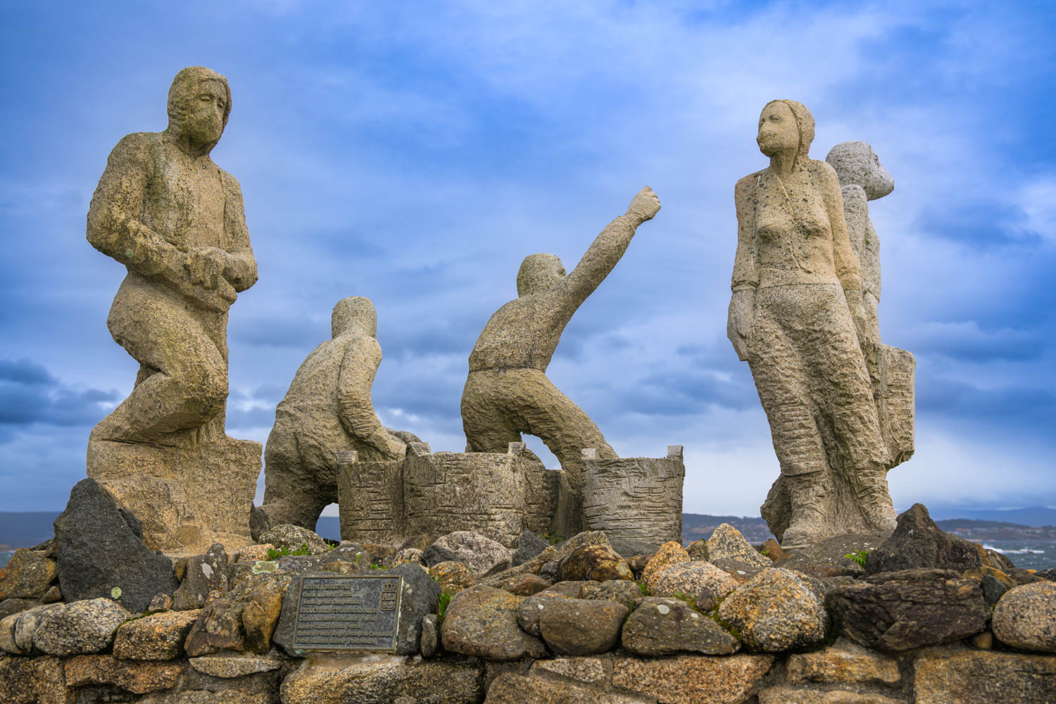 Ein Denkmal erinnert an die freiwilligen Helfer, die die Strände säuberten nach dem Untergang des Öltankers Prestige in 2002. Damals ergossen sich 77000 Tonnen Öl in das Meer.