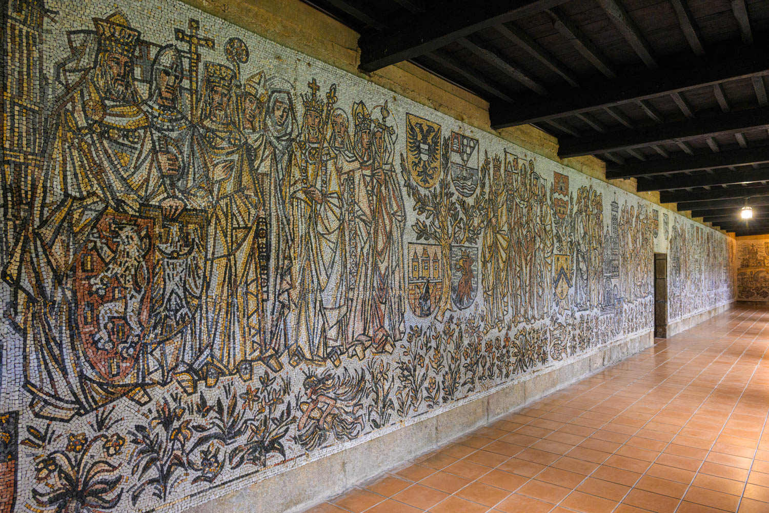 Im zweiten zeigt ein monumentales Mosaik die einzelnen Stationen der französischen Variante des Jakobsweges von Paris bis Santiago.
