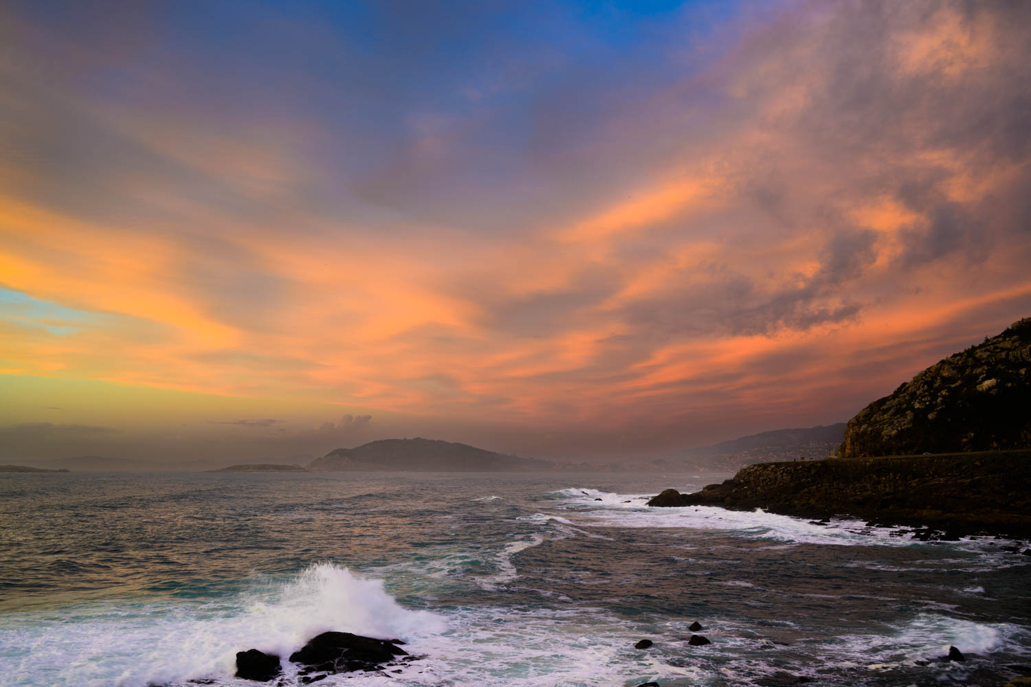 Südlich von Baiona schlossen wir den Tag mit einem schönen Abendrot ab.