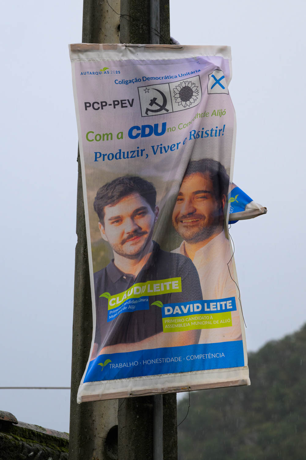 In Portugal stehen Wahlen an. Hier wird für die „CDU“ geworben. Mit Hammer und Sichel im Wahlplakat scheint die portugiesische CDU eine etwas andere Ausrichtung zu haben als die deutsche.
