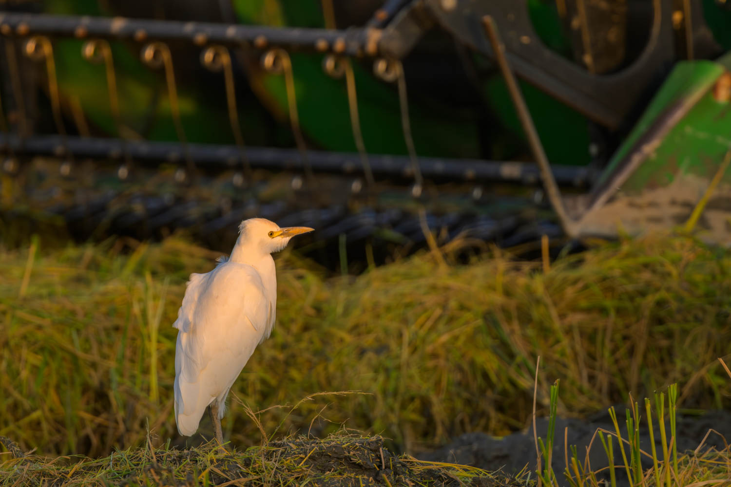 Die Kuhreiher waren besonders mutig und ließen den Mähdrescher nahe an sich herankommen. Vor Fotoapparaten nahmen sie deutlich früher Reißaus.