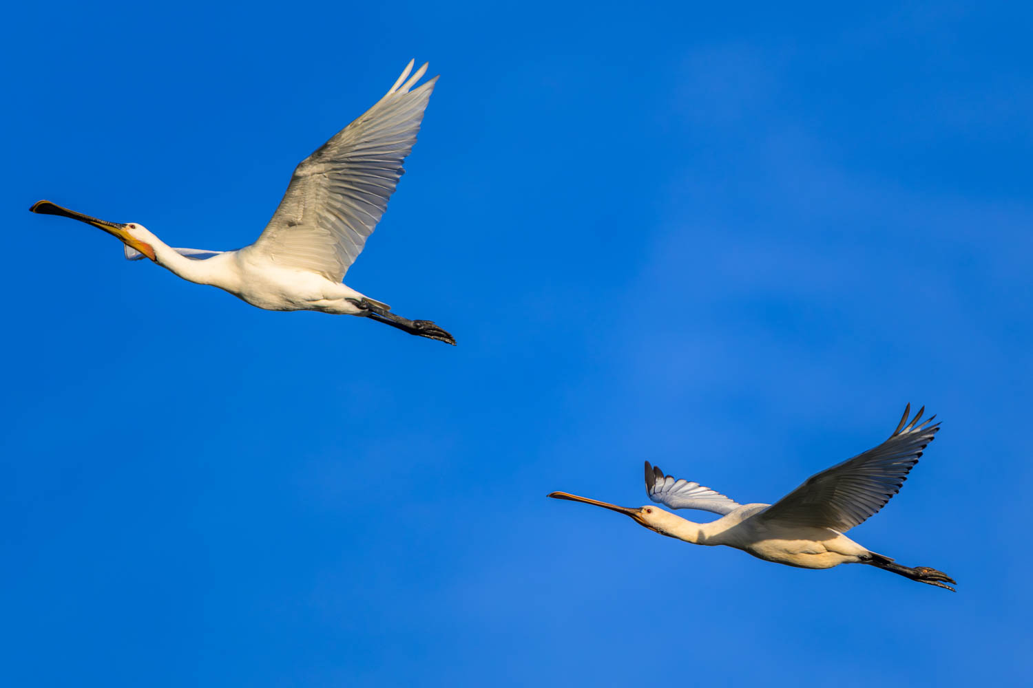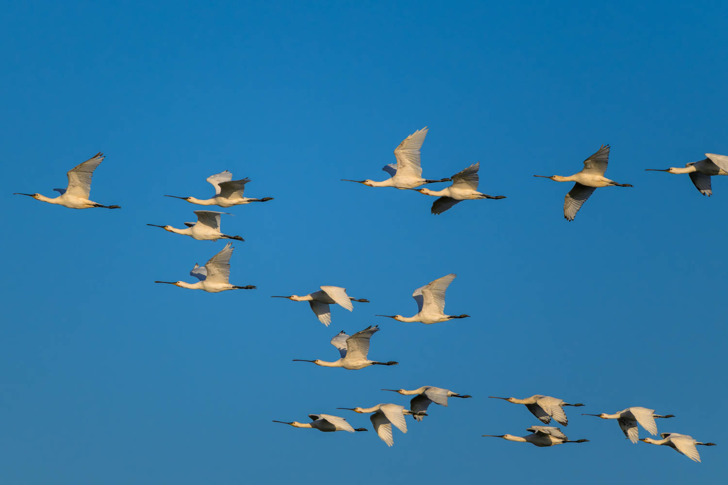 Am Nachmittag zogen Schwärme von Löfflern (Platalea leucorodia) über uns hinweg.