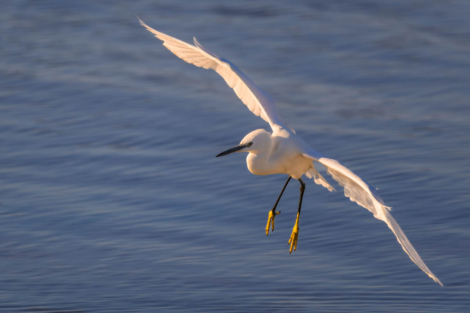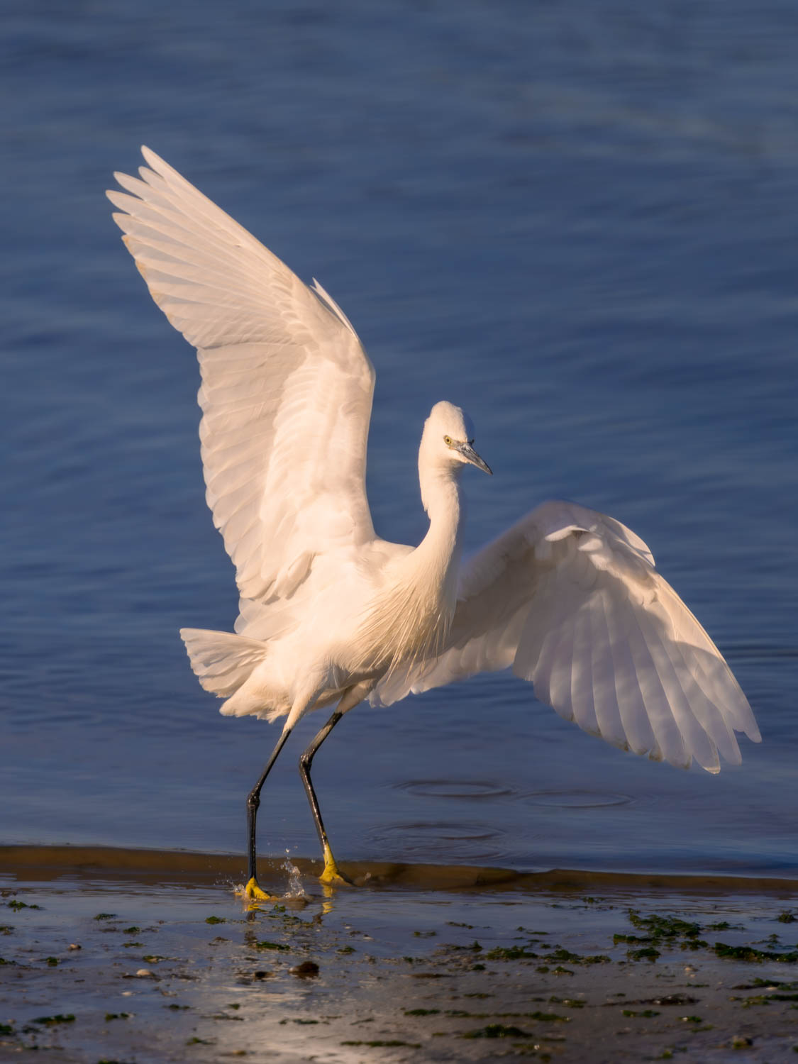 Ein Seidenreiher (Egretta garzetta) legte eine elegante Landung hin.