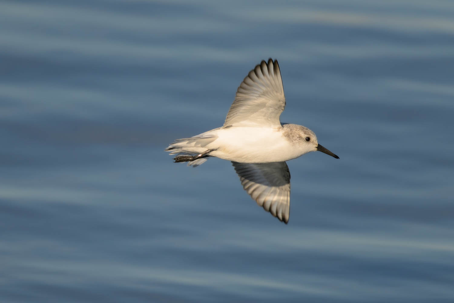 Am Ufer des Tejo suchten Sanderlinge (Caldris alba) emsig ihre Nahrung.