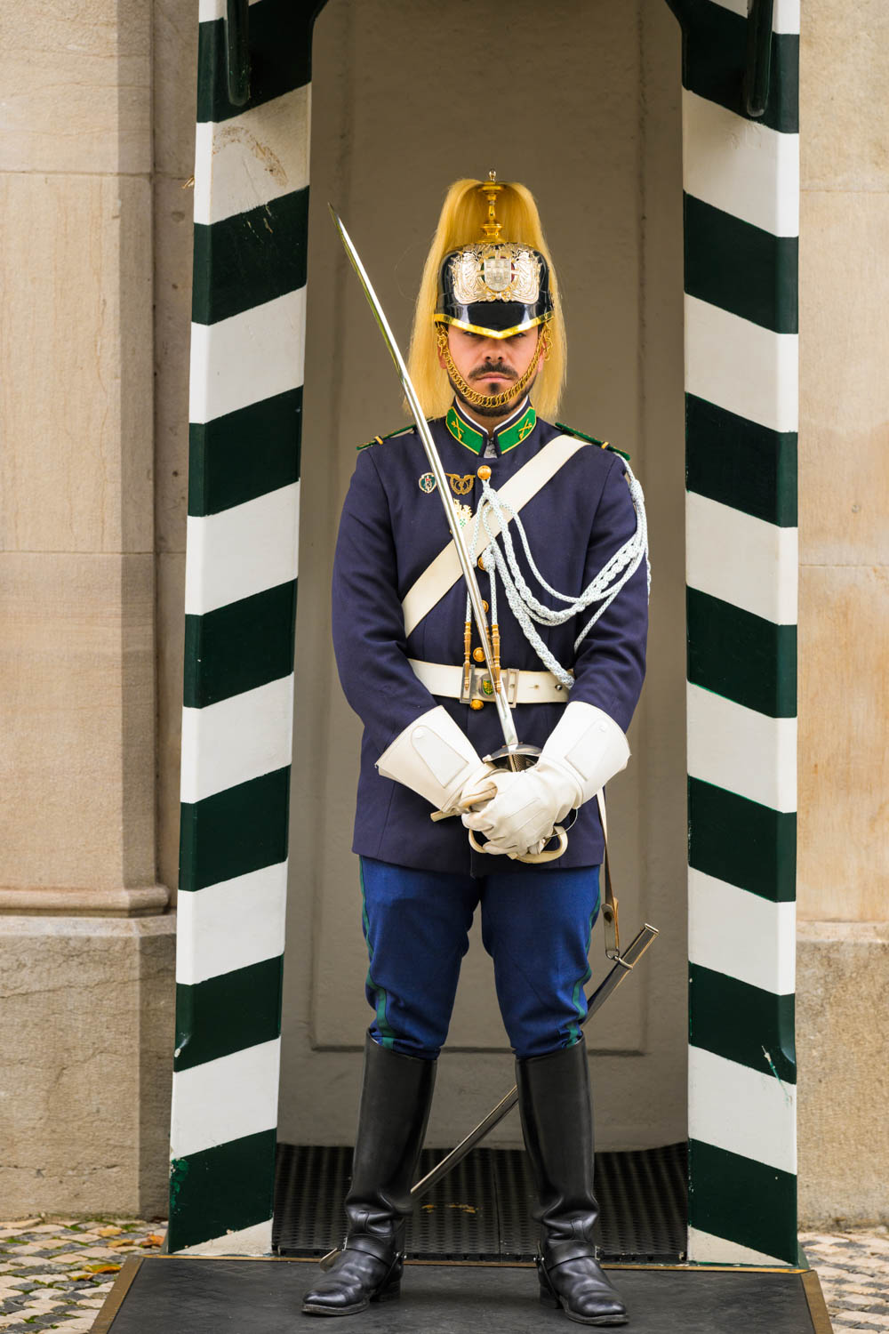 Vor dem Museu da Guardia Nacional Republicana stand unbeweglich ein fescher Wachposten.
