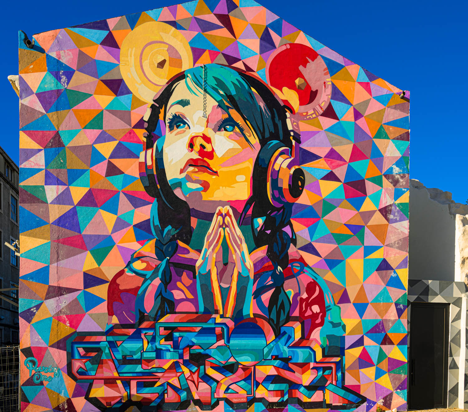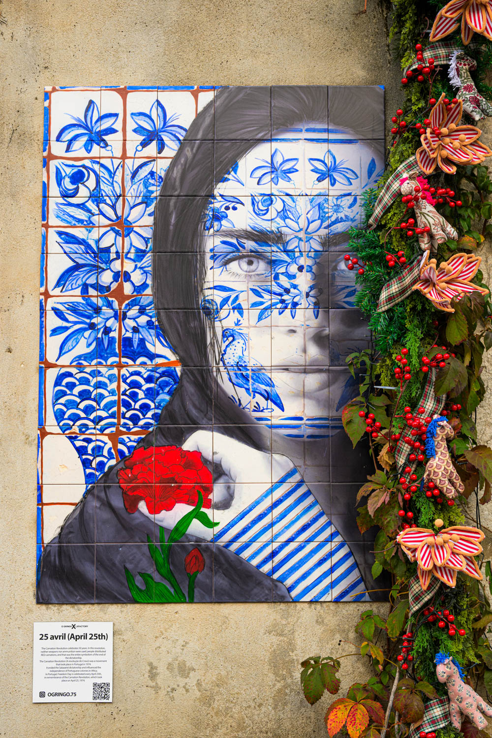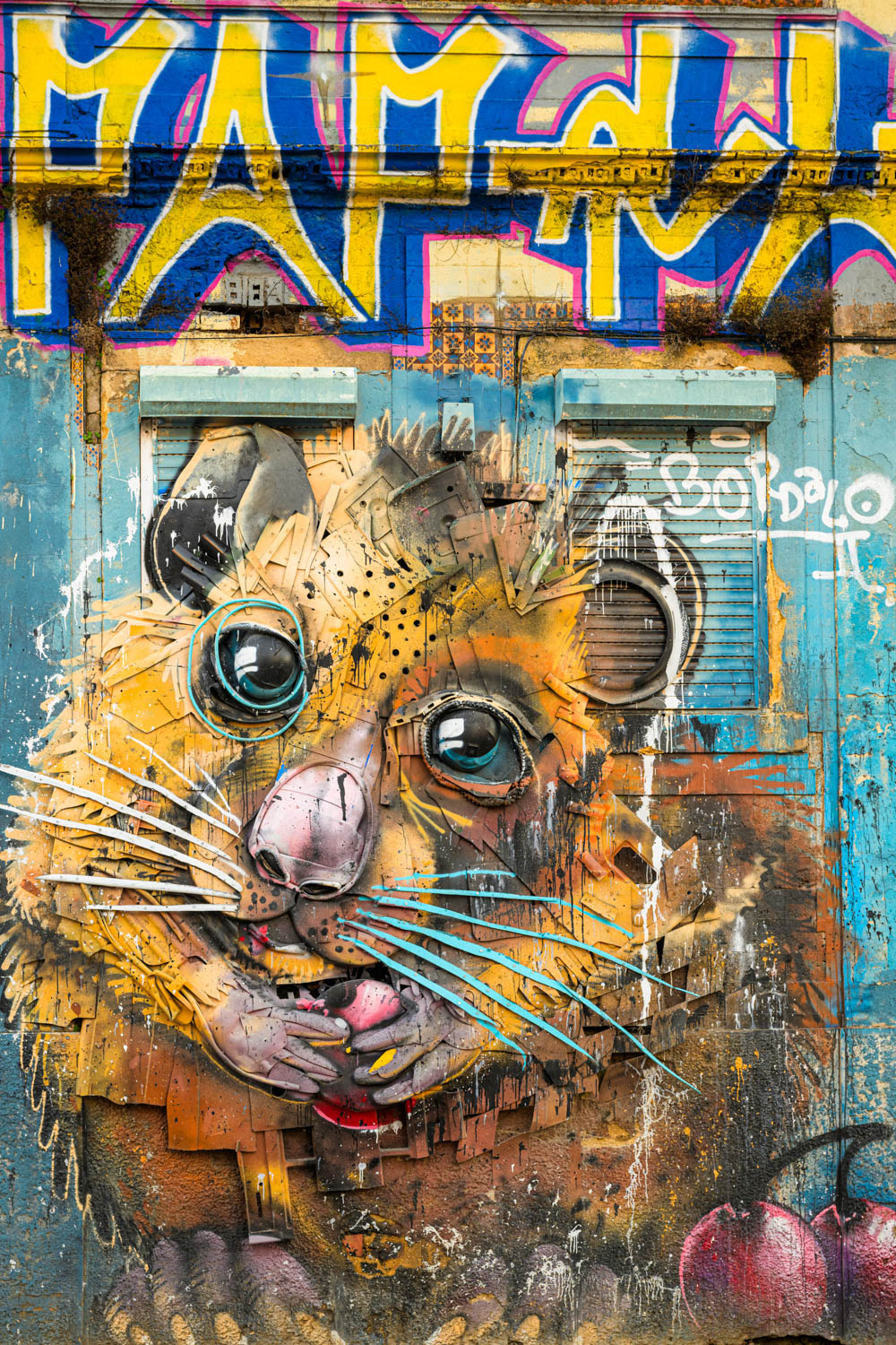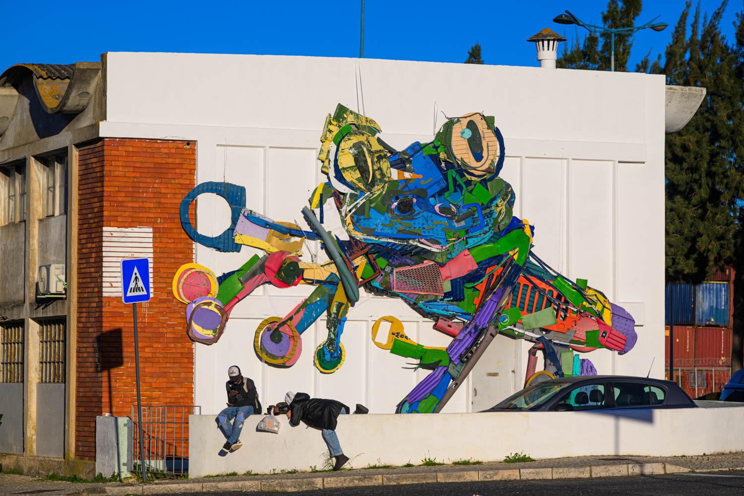 Gleich nebenan ein Werk des Künstlers Bordalo II. Er ist bekannt für seine dreidimensionalen Figuren aus Abfall.