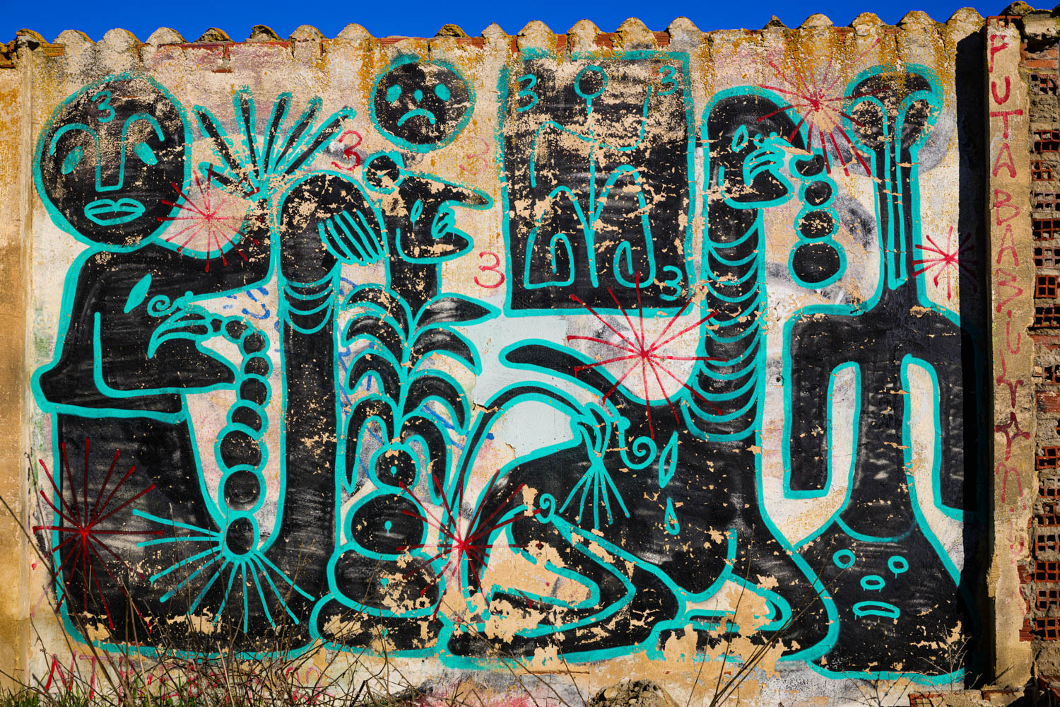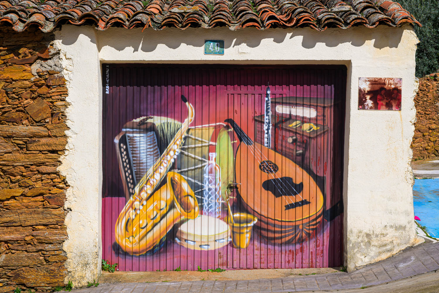 Im kleinen Weiler Romangordo sind die Häuser und Garagentore mit Murales verziert.
