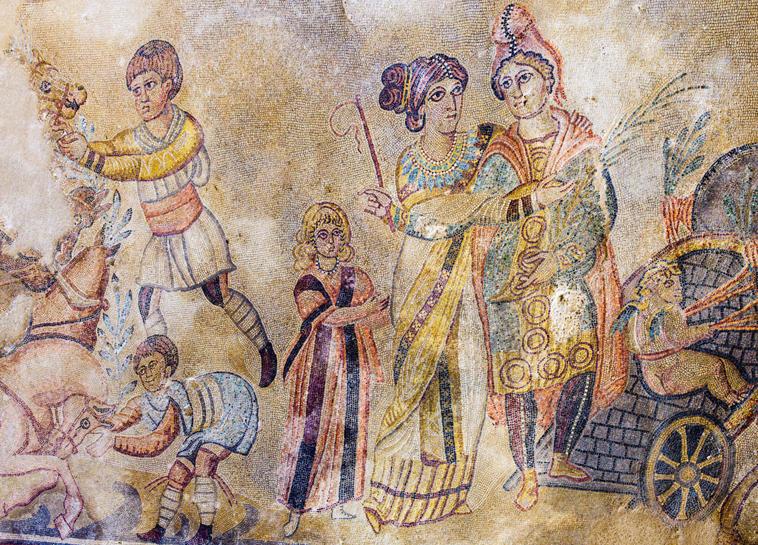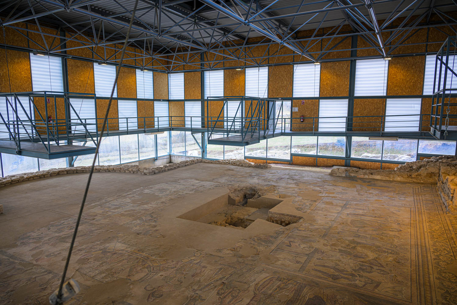 Heute ist das Mosaik in einer Halle geschützt und kann von einem Steg aus gut betrachtet werden.