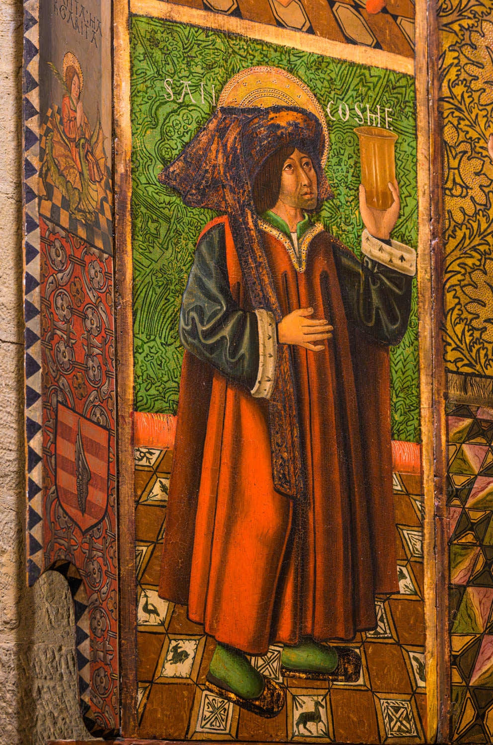 Wolfgang gefiel die Darstellung des heiligen Kosmas, wie er als Heilkundiger die Urinschau vornimmt. Die Untersuchungsmethoden waren früher doch viel einfacher als heute…