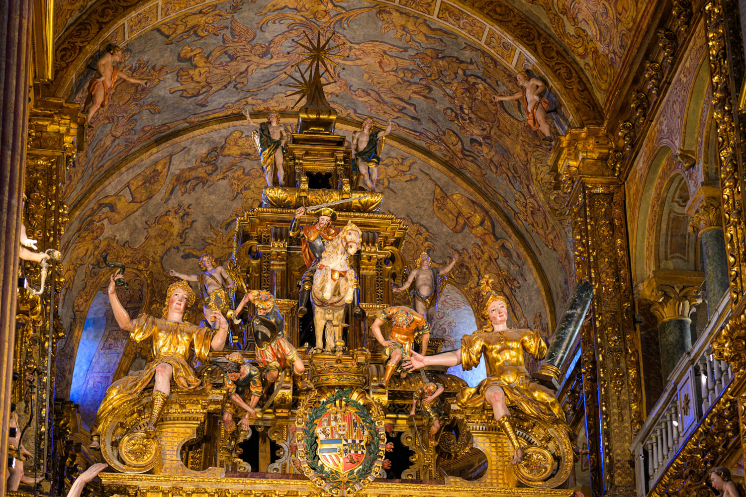 Im Hauptschiff angekommen, öffnet sich der Blick auf den barocken Altar. Unsere Beschreibung für ihn, wenn auch nicht so ganz kunsthistorisch korrekt, ist: bombastisch!