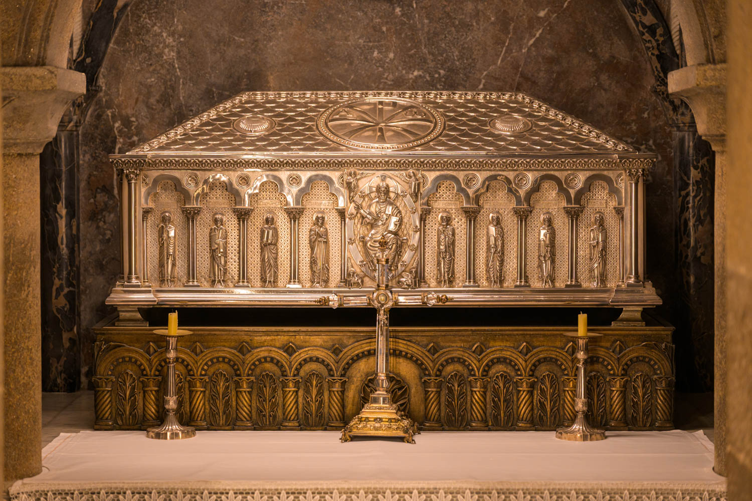Unter dem Altar führt ein enger Gang am Grab des Apostels vorbei.